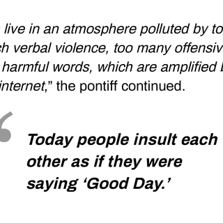 🙏You don’t need to be Catholic to agree with the Pope’s lament of “modern society inundated with empty words where people insult each other as if they were saying ‘Good Day.’” Or last year’s edict to “give up gossip and hypocritical condemnation of others.”